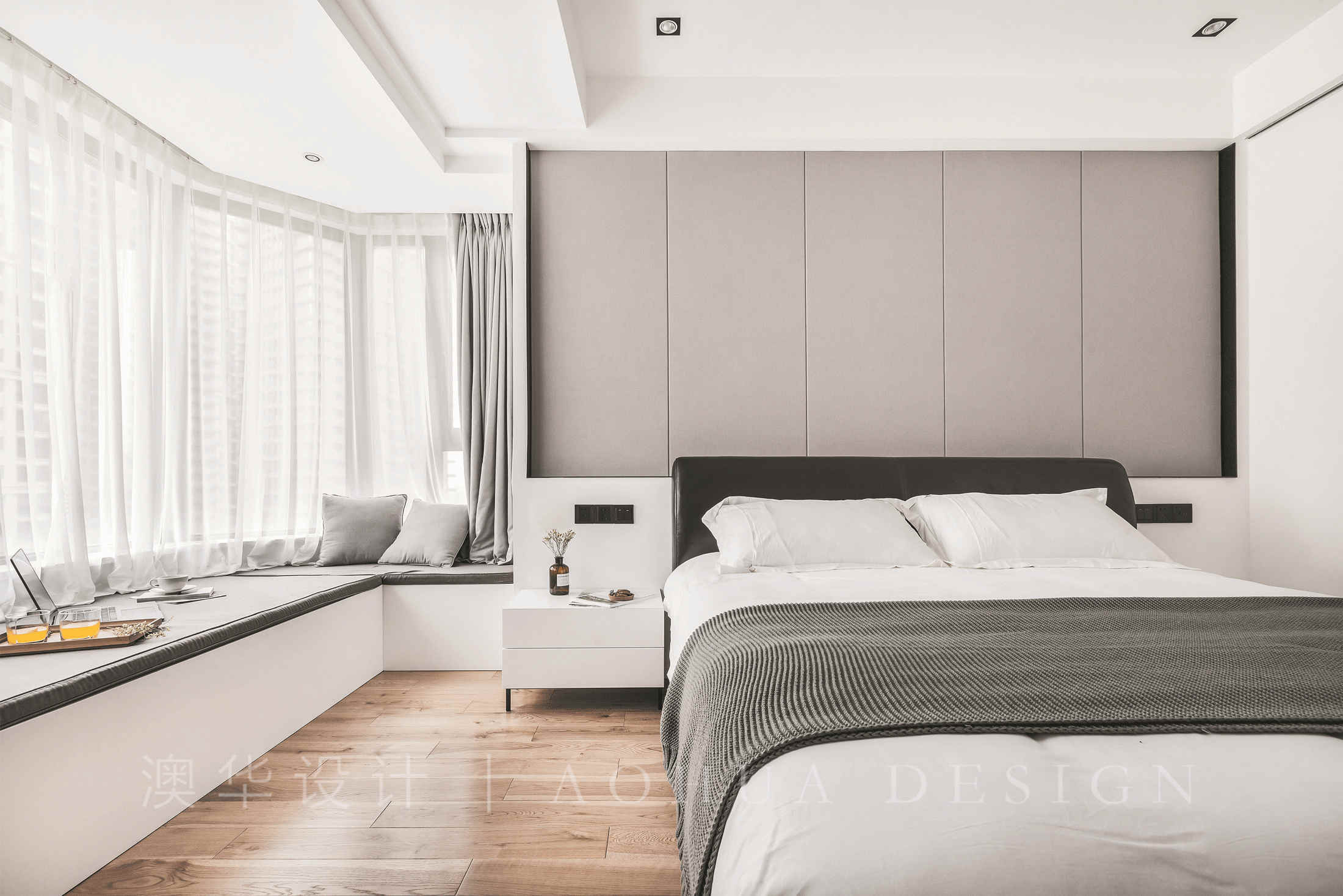 • 主臥的設(shè)計去繁求簡,沒有強烈的要素碰撞,只留下家的自然寧靜。將主臥窗臺做成大飄窗,可以臥坐于此賞景發(fā)呆,其下也可以收納雜物。