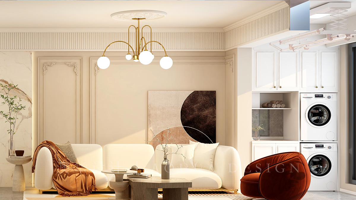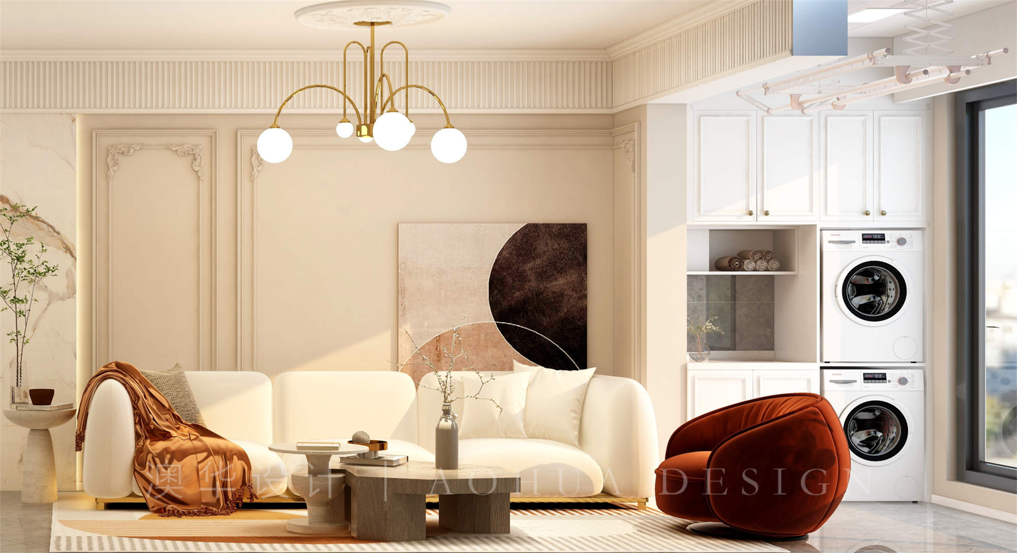 • 客廳陽臺通鋪保持空間連貫性,法式拱門設計.打破門框線條的硬朗感更頃一份柔和溫馨的法式氛圍,家居軟裝簡約又不乏設計感,奶呼呼軟綿綿的泡泡沙發,填補了空曠感,增加了生活的溫度