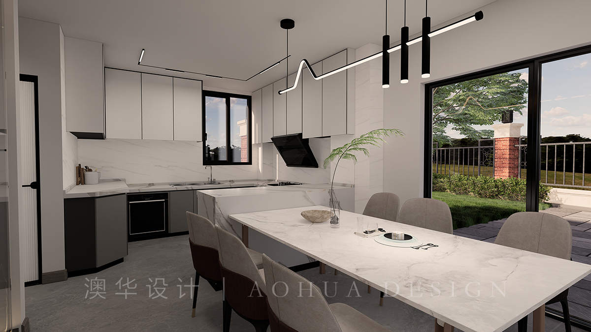 • 長方形西餐桌連接廚房與客廳,讓一樓給人視覺上的貫通感