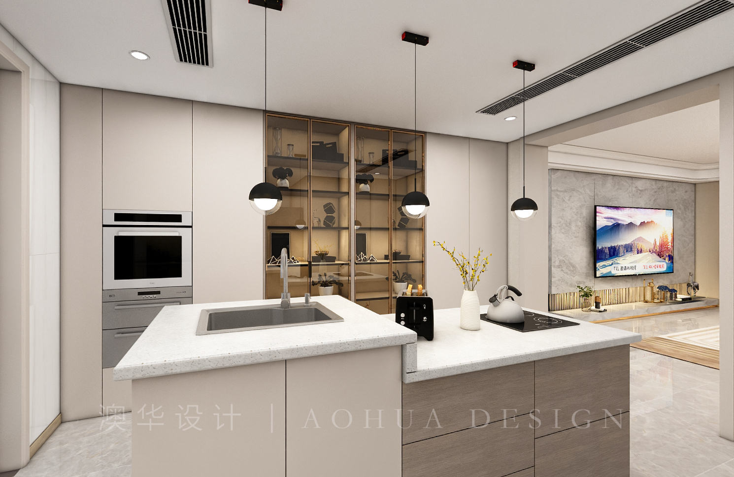 • 餐廚一體化設計,使整個空間更加開放,便于家人之間相互交流,使空間得到了合理的運用。