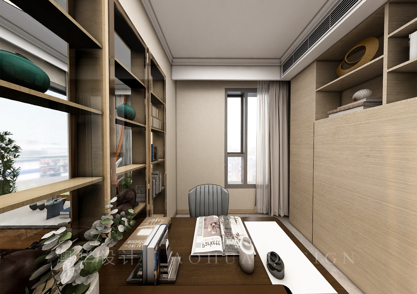 • 書房采用翻板床設計,既能滿足辦公需求,又能作為客人臨時居住空間。