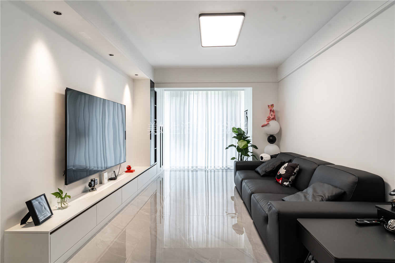 • 客廳以清新雅致的黑白灰為主旋律,鋪就素雅簡潔的空間基底。大面積純白鋪陳,輕盈而純凈,黑色巧妙點綴,層次分明,空間更顯利落與雅致,每一處都彰顯著不凡的現代生活美學。
