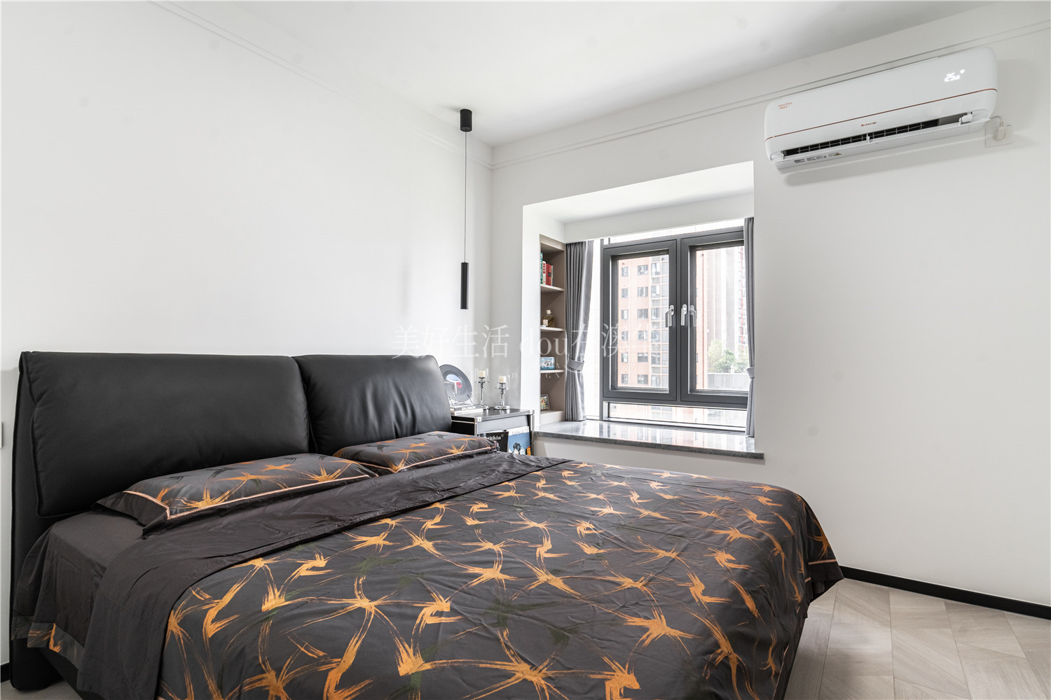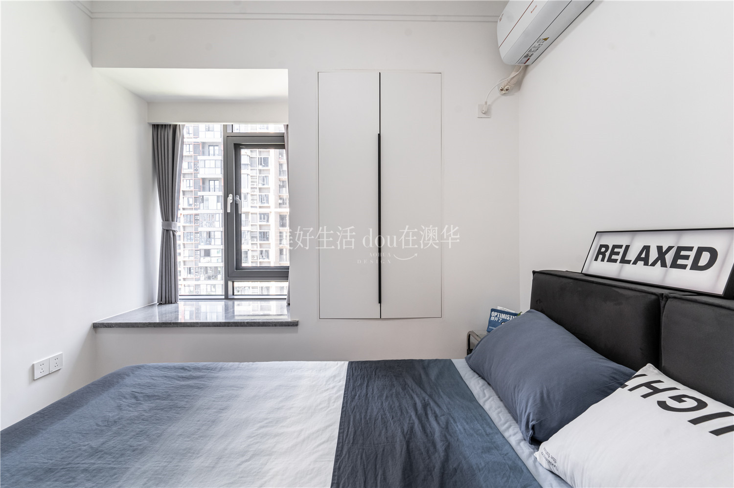 • 定制通頂衣柜后,又在飄窗旁添置一組嵌入式衣柜,將所有雜物通通收納。空間因此變得開闊,連飄窗也成為了治愈心靈的角落。