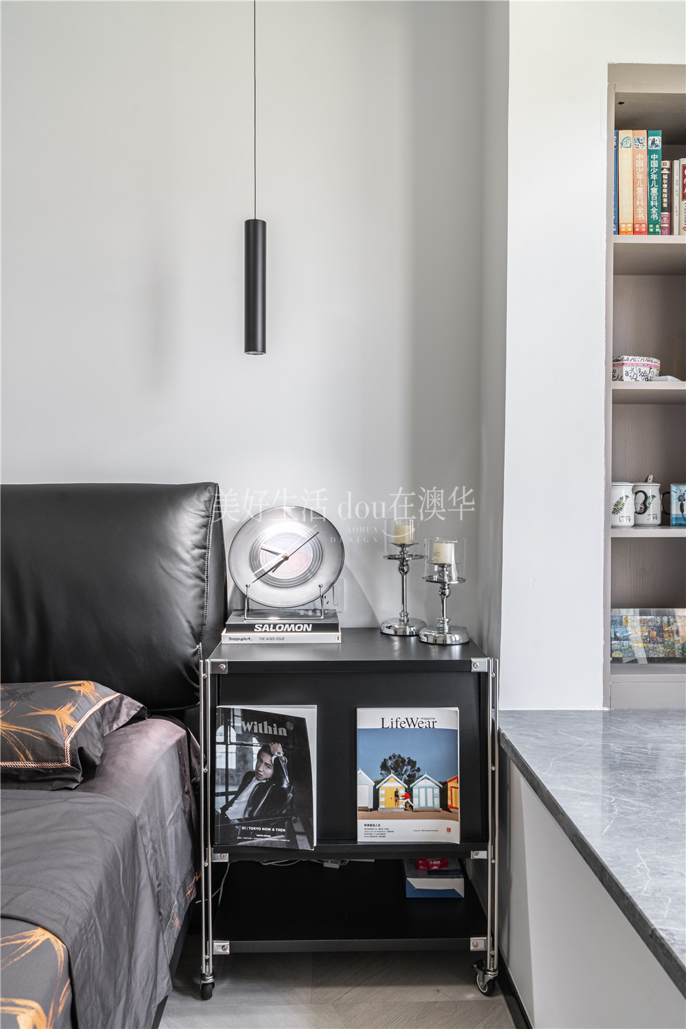 • 在飄窗邊側掏個洞,置入一列開放式書架,這里就是靜謐而雅致的閱讀角落。