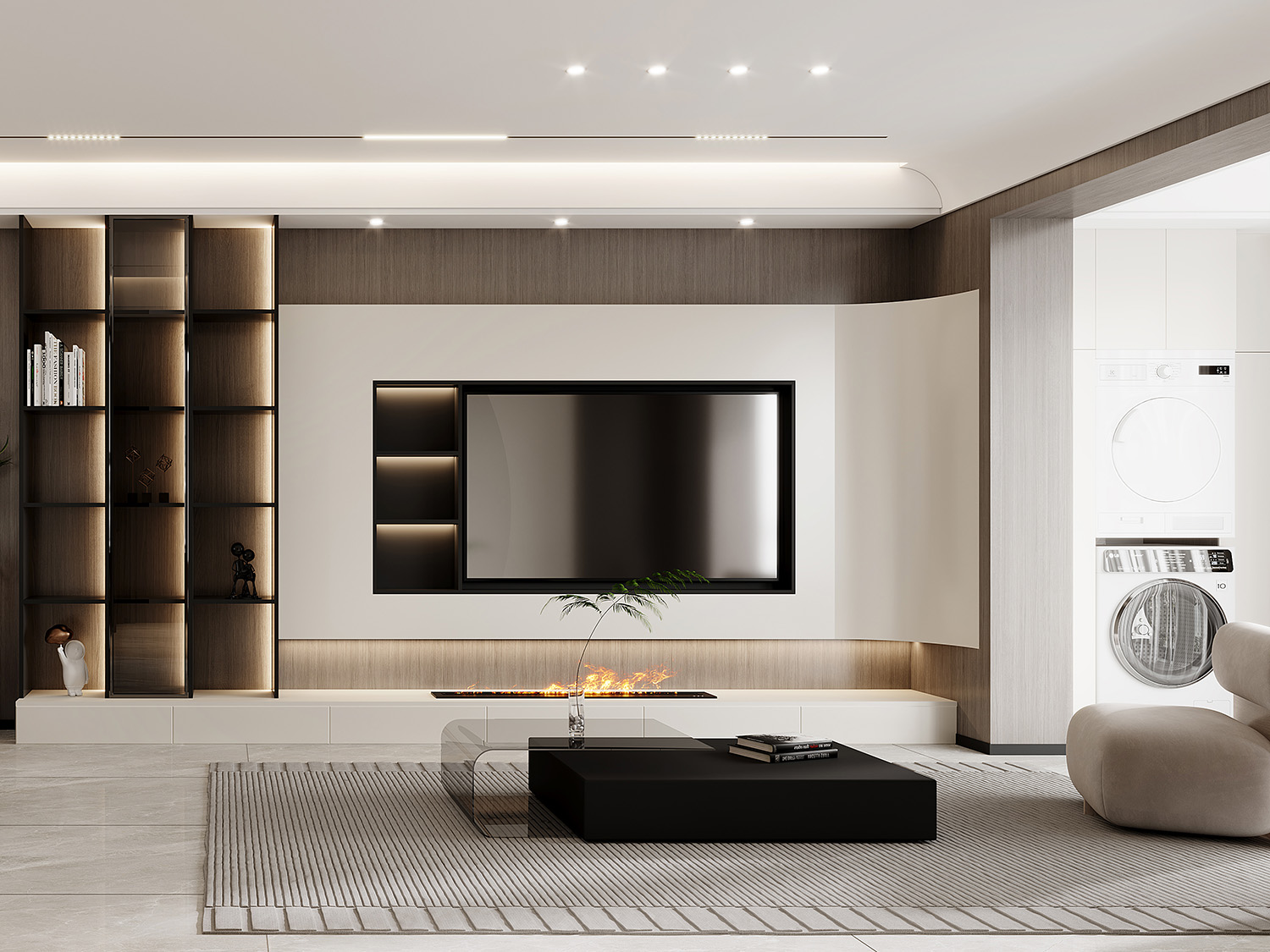 1 通體背景柜處理,解決儲物量和儲物分類。