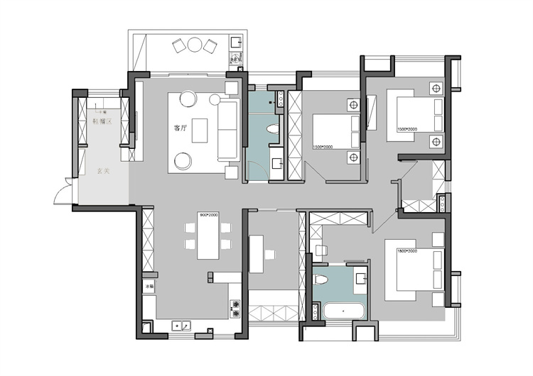 沙發(fā)和地毯都經(jīng)過精心挑選,傳統(tǒng)美式風格低調奢華,缺點便是客廳的電視墻略微狹窄,觀看電視些許不舒適。
